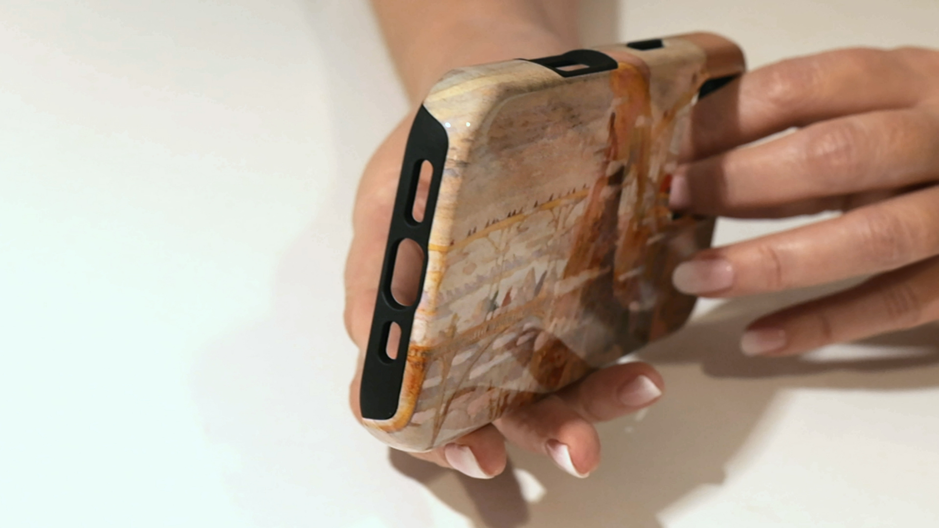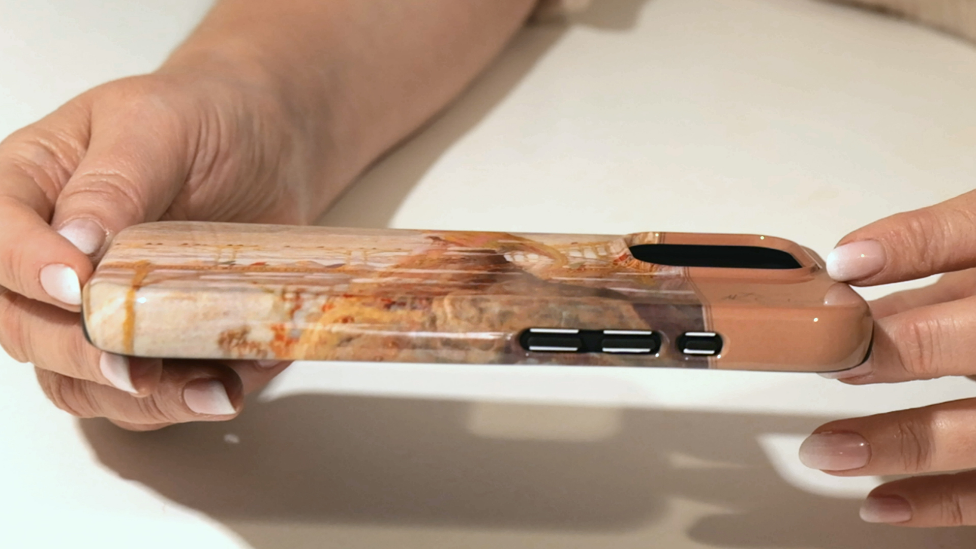 When crafting these cases for various phone models, we carefully compose each design individually. To preserve the most beautiful elements of Čiurlionis’ paintings, we sometimes create additional artwork edges using repeated motifs, which appear on the sides of the case. We strive to maintain the essence of the original – its colours and atmosphere.